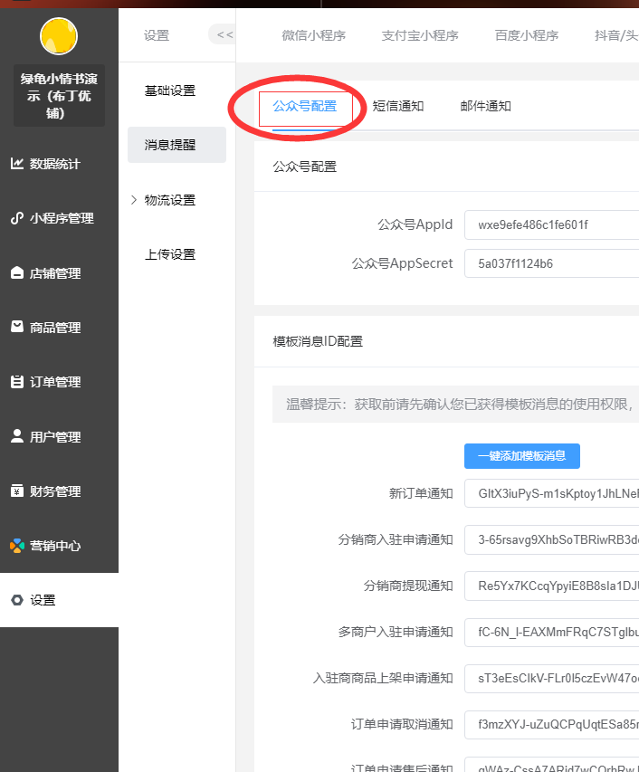 该功能用于给后台设置的公众号关注者发送公众号模板消息,提醒他们有用户下单等