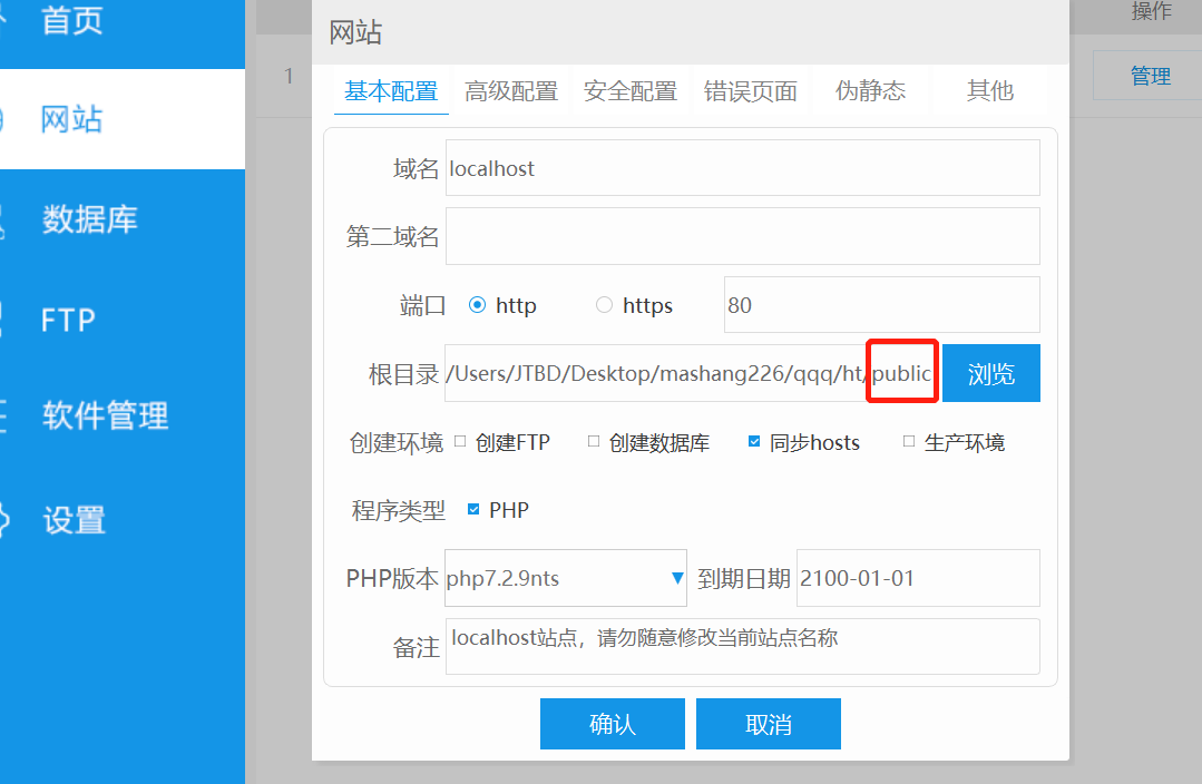 **1.添加站点,程序根目录指向public目录**