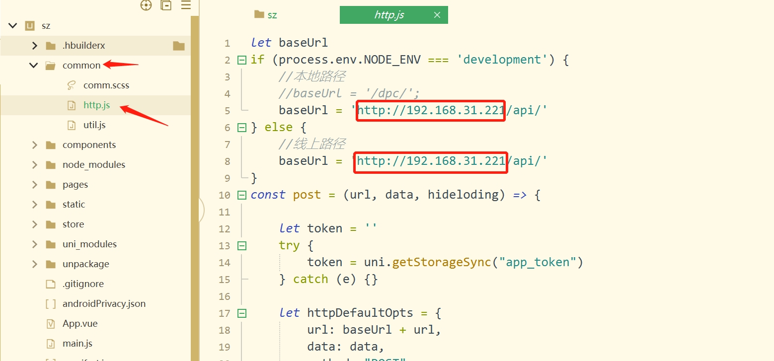 1.将前端代码导入到HBuilder X,修改接口请求路径为你的域名