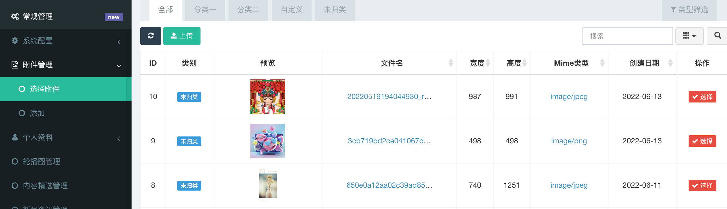 附件管理等同于图片站,通过后台上传过的图片都会留存在空间站,方便后面重复选用