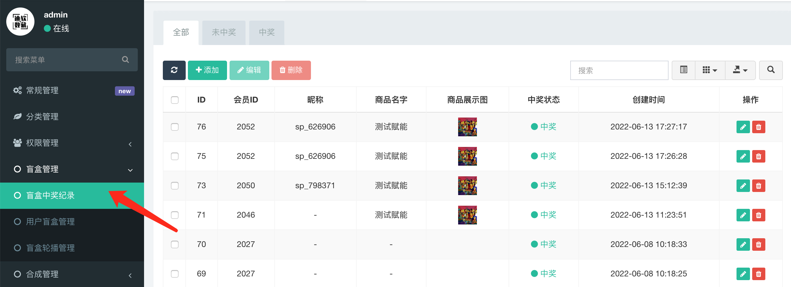 1、盲盒中奖记录