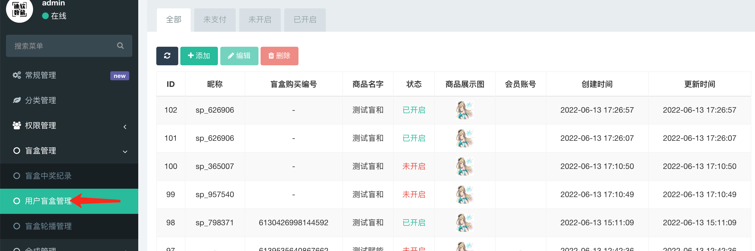 2、用户盲盒管理