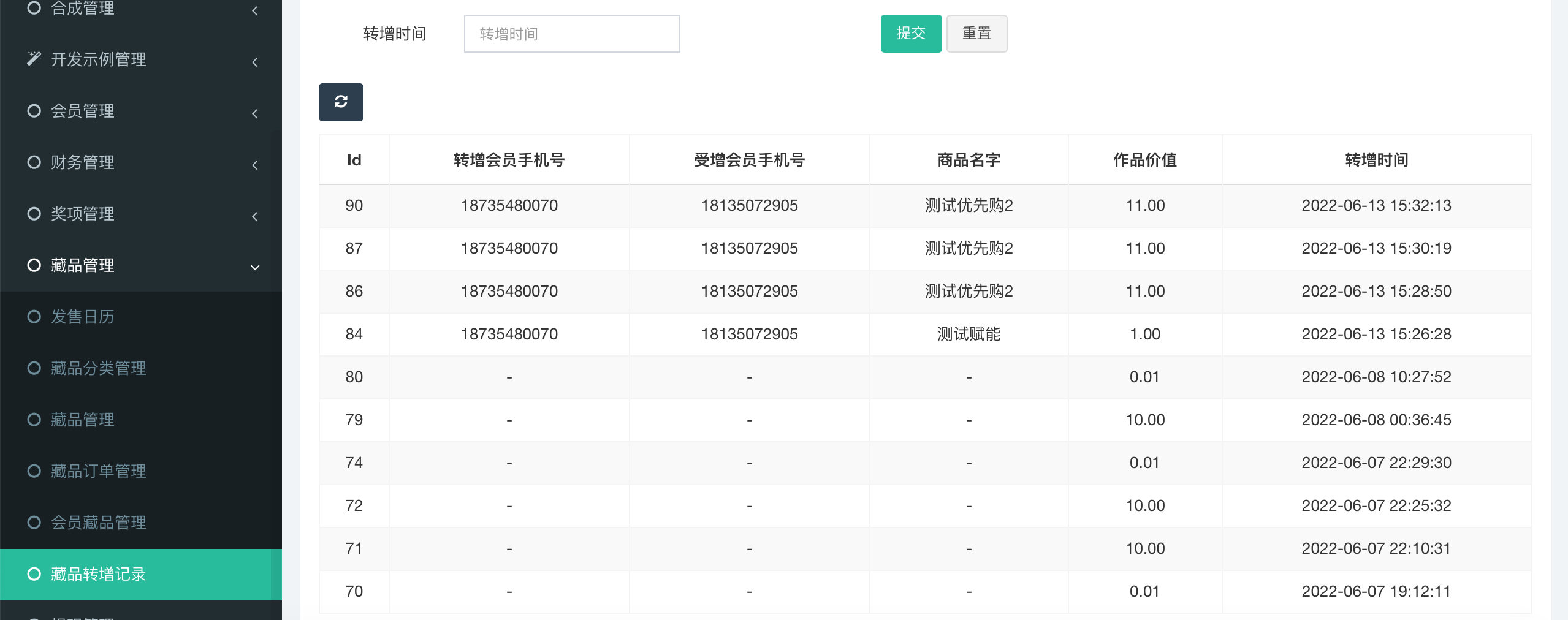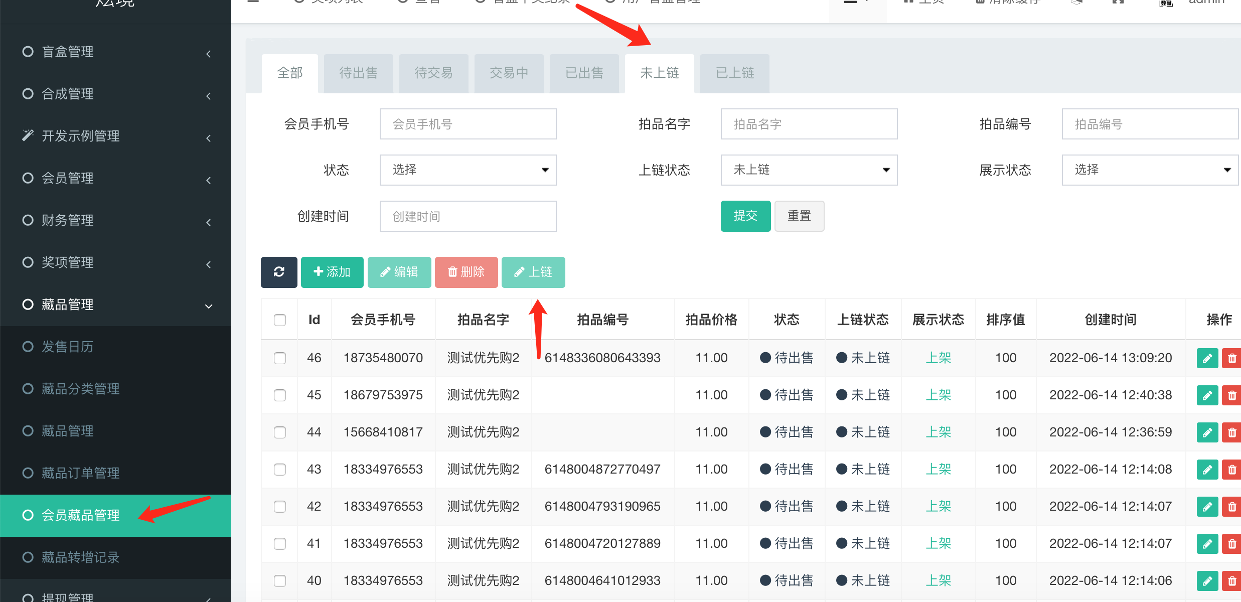 会员的藏品包裹,会员购买藏品之后,需要后台操作对藏品进行上链,不上链会员无法转赠,因为无链上数据