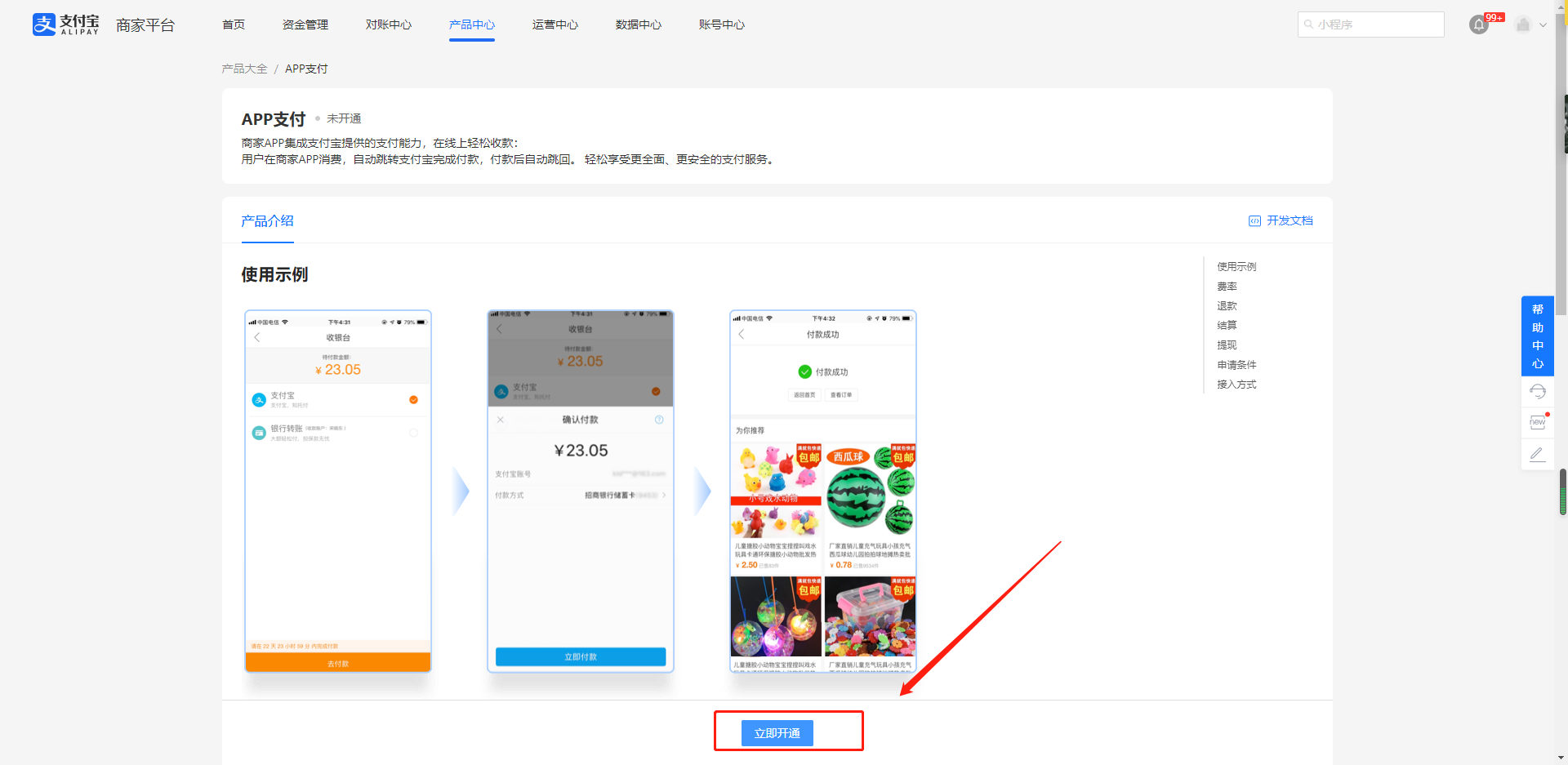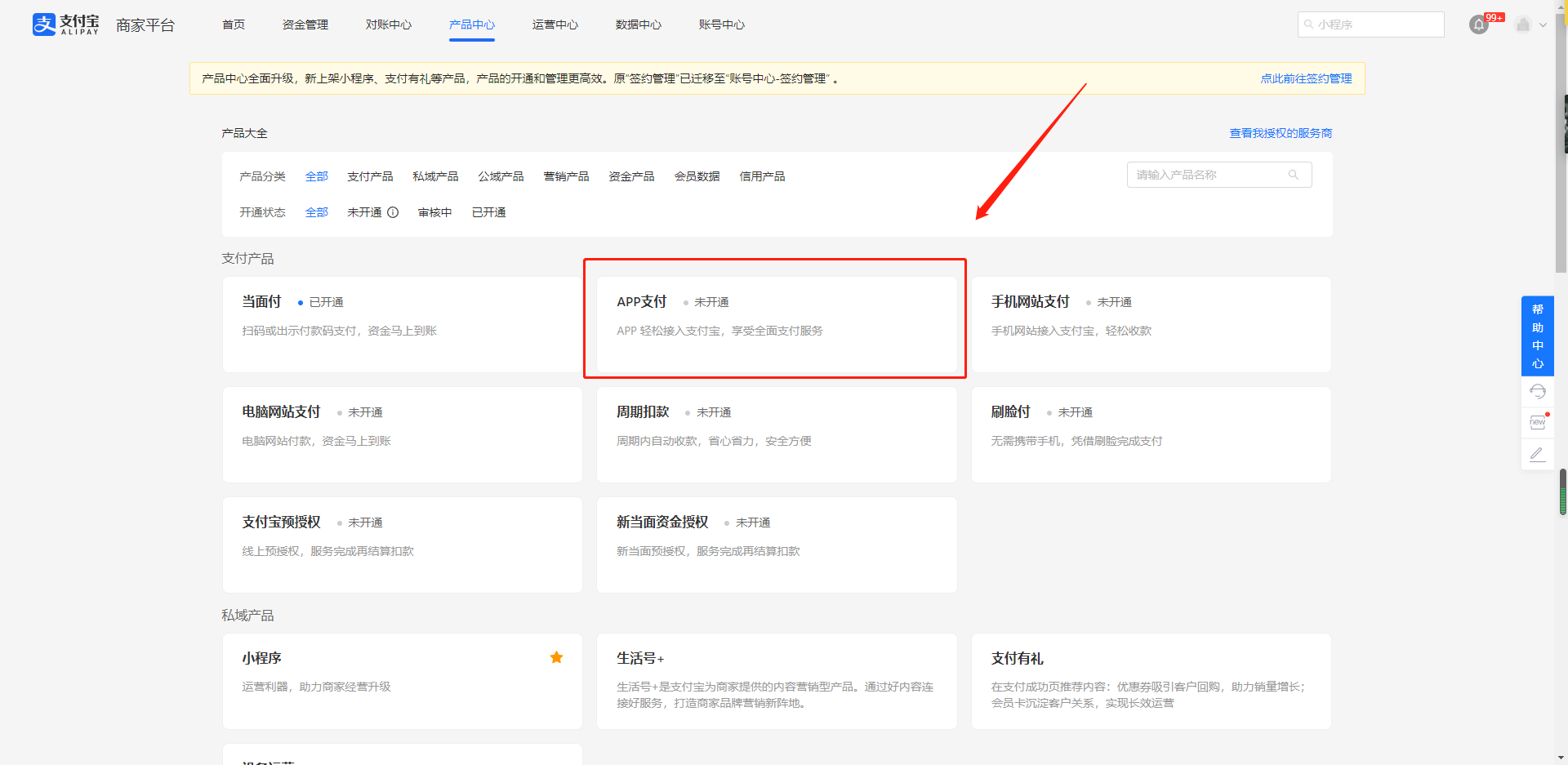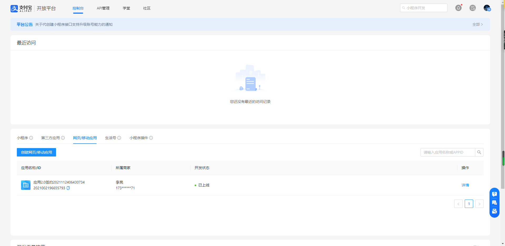 7. 打开开放平台 [https://open.alipay.com/develop/manage](https://open.alipay.com/develop/manage),
