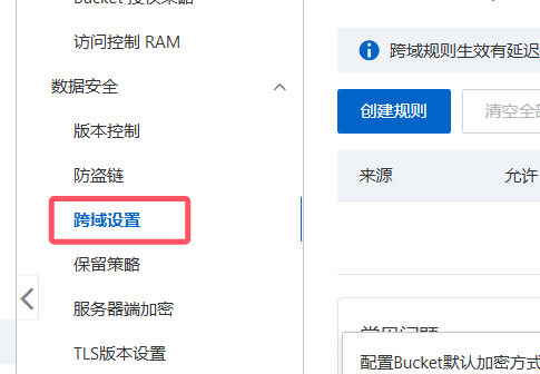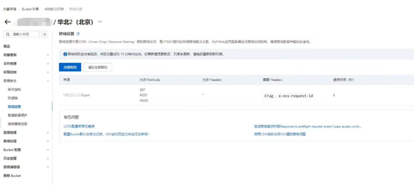 ****注:后台开启阿里云对象存储是需要配置跨域的,具体操作如下:****