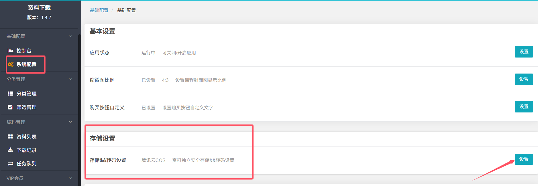 **资料下载可以单独配置云存储,配置后资料下载里上传的文件都会存储到单独的存储桶里,具体操作方法如下:**