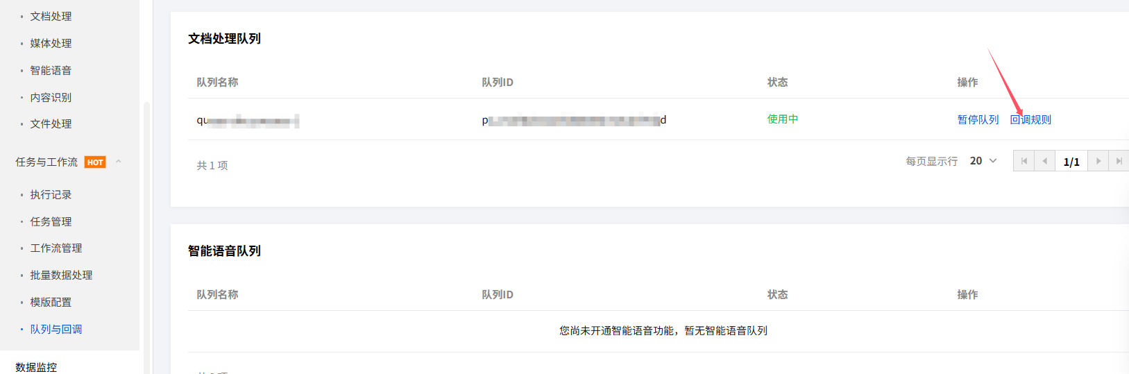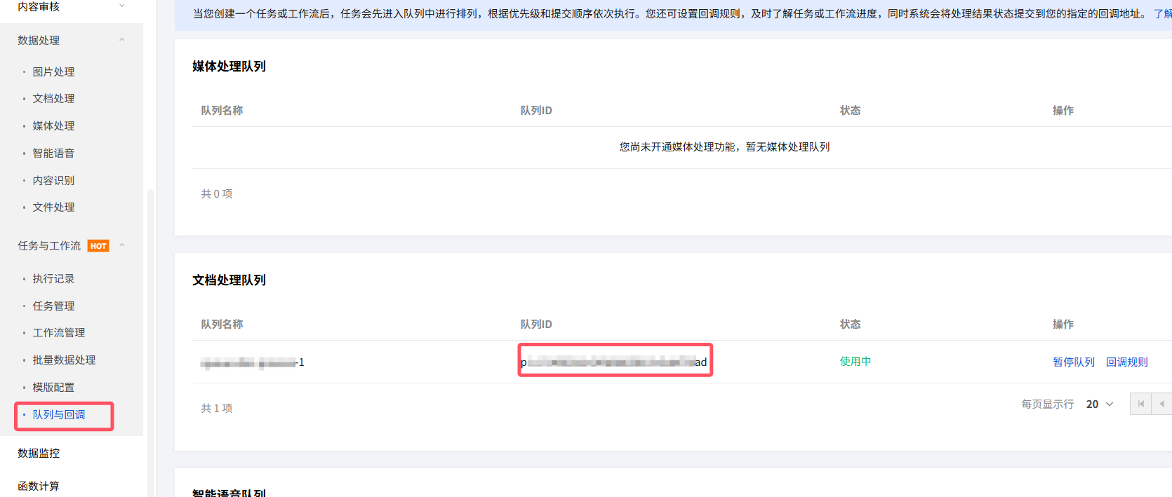 点击任务与工作流-队列与回调,复制队列ID