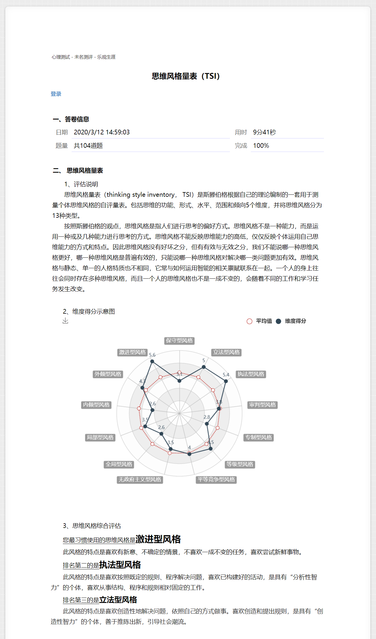 ## 思维风格测试 — 报告样本