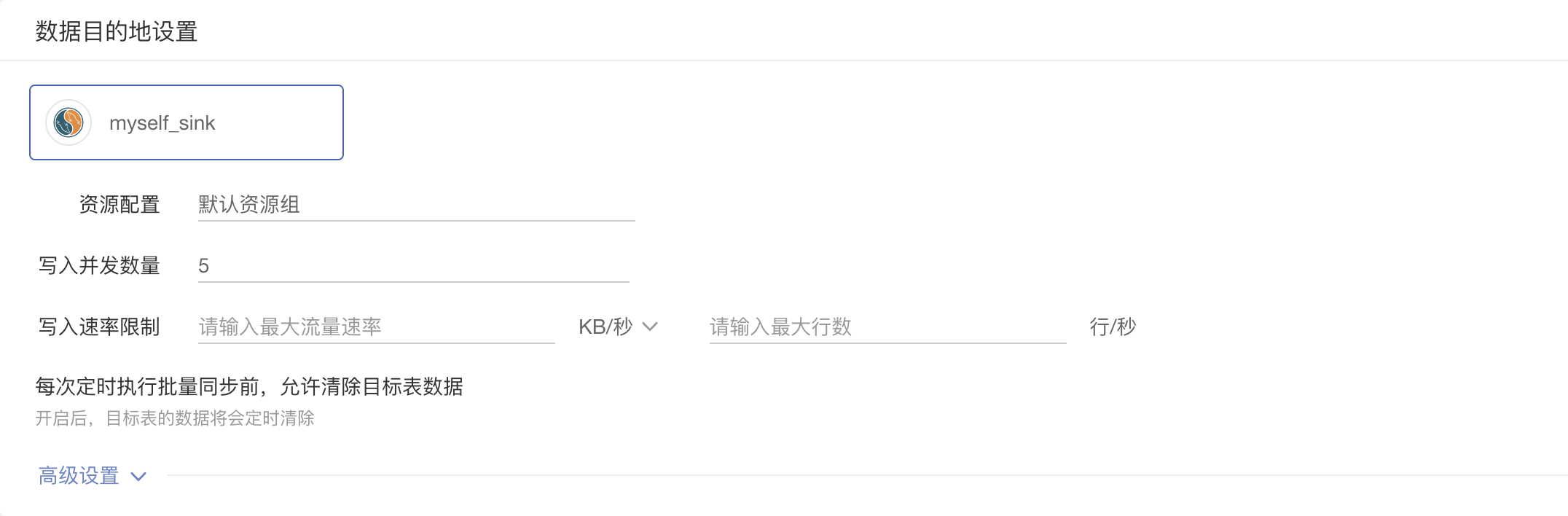 * 设置当前任务数据目的地使用资源组,通过合理分配任务与资源组,可使重要任务计算资源得到保障。