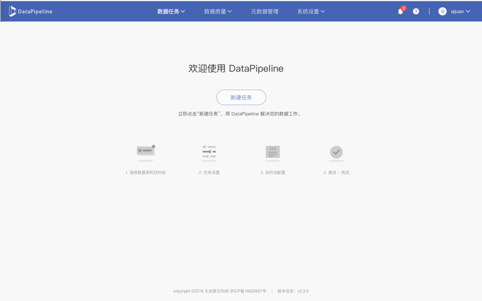 企业用户需要把某一个「数据源」的数据迁移到一个或多个「数据目的地」,此时用户可通过创建「数据任务」在DataPipeline实现数据迁移的工作。
