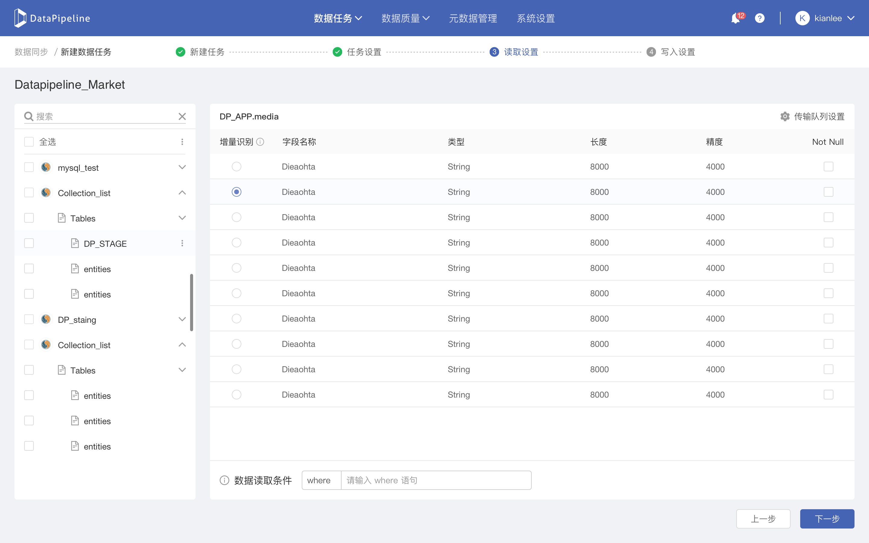 使用DataPipeline创建一项「数据同步」,主要分以下步骤: