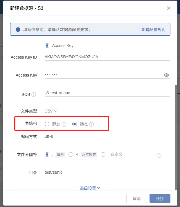 确认完毕后,点击「新建数据源」,选择「S3」进行新建操作: