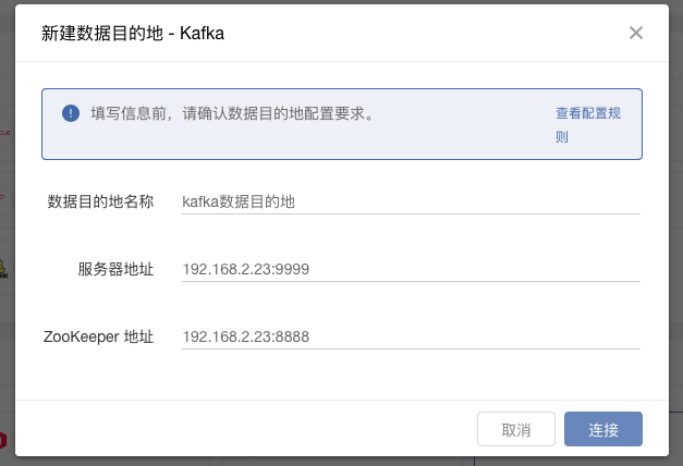 在进行配置之前,请务必检查您的Kafka数据目的地是否符合平台要求,参考如下: