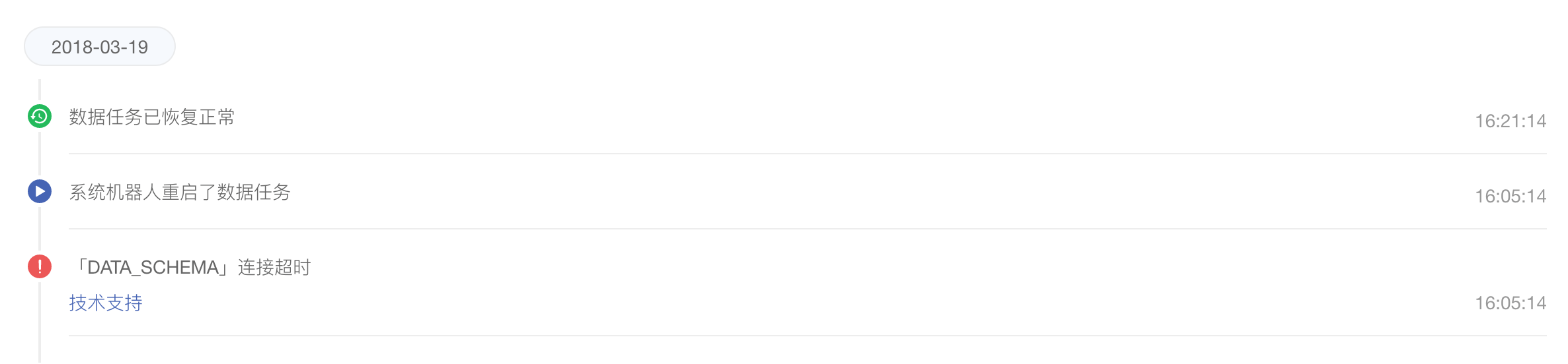 * 重启后,若该「数据任务」十分钟内未发生同样的错误,「消息列表」中将记录“数据任务已恢复正常”的消息。