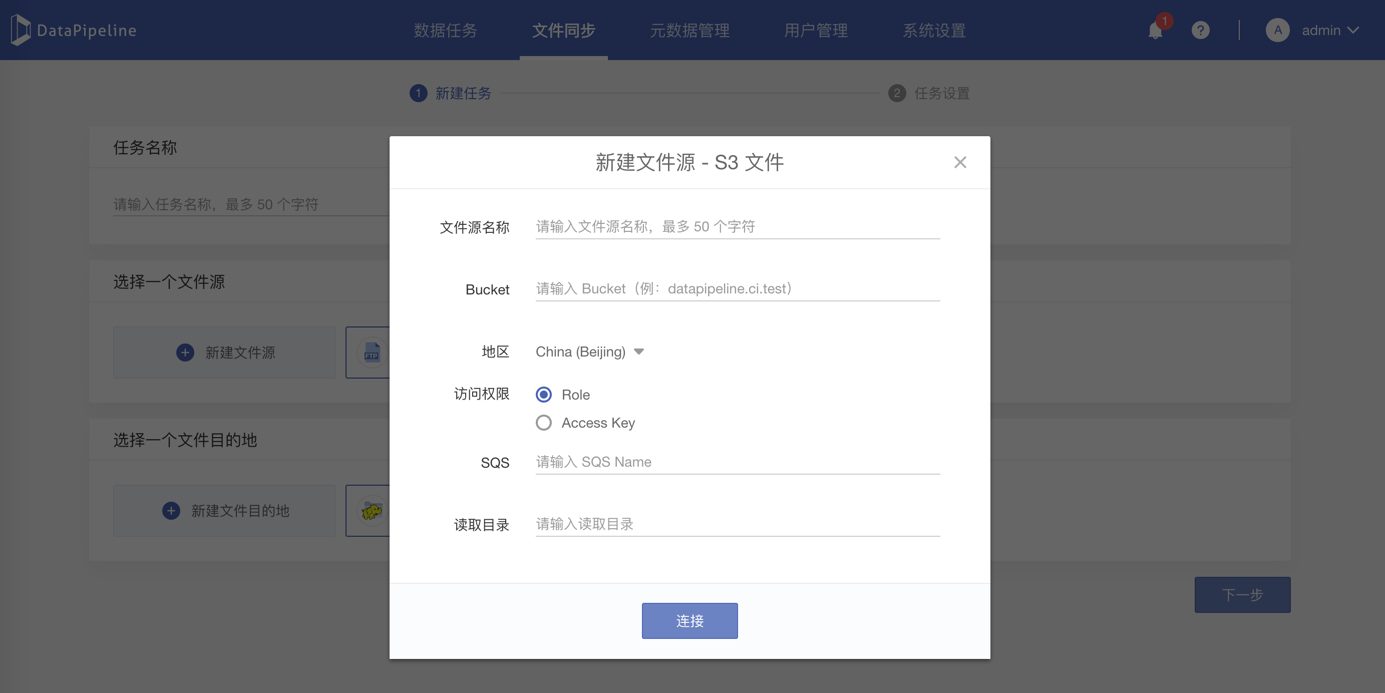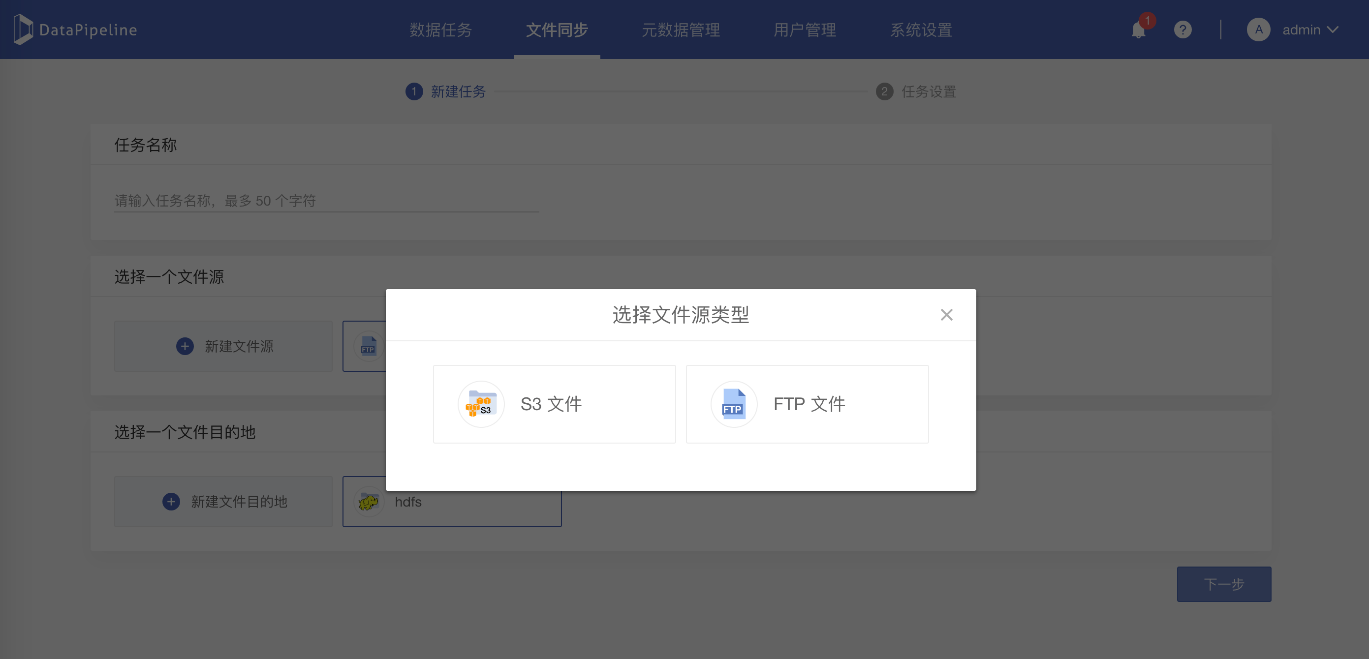 一、点击「新建文件源」,会弹窗要求用户选择文件源类型。