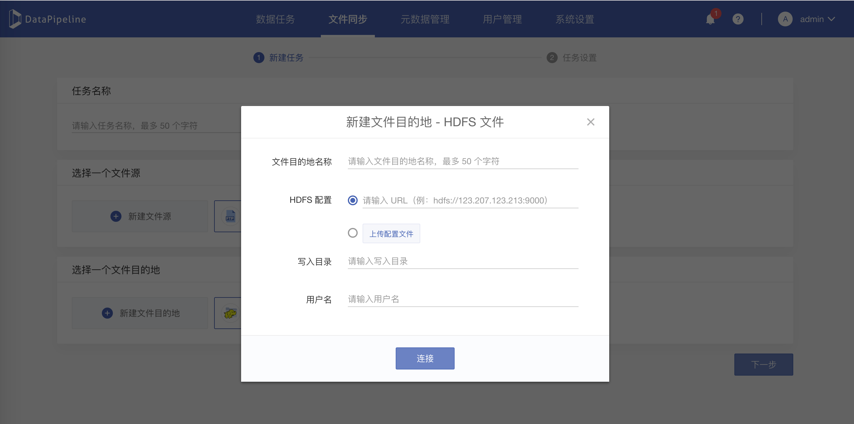 * 系统会判断「文件目的地」配置项是否可以连接成功。