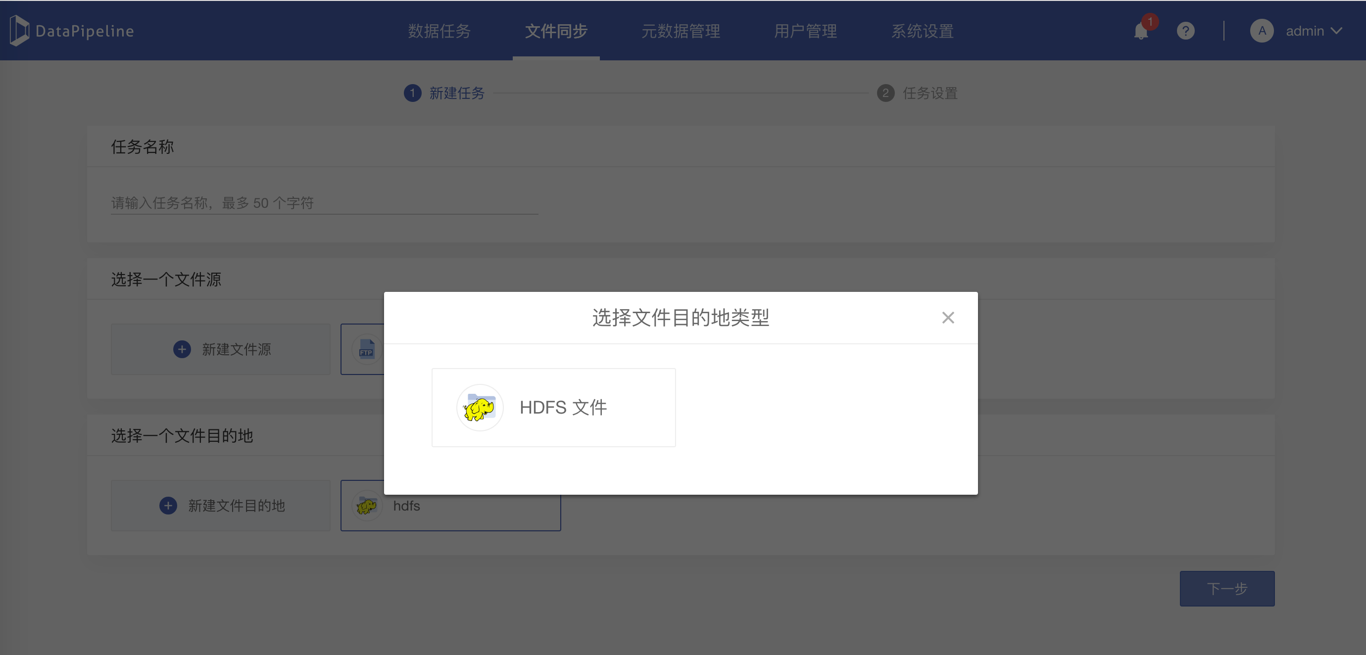 一、点击「新建文件目的地」,会弹窗要求用户选择「文件目的地」类型。