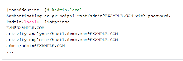 ### 查看KDC上的principal的方法