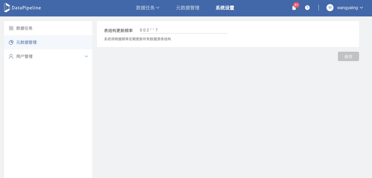 * 系统将根据用户设置的频率定期更新所有数据源表结构