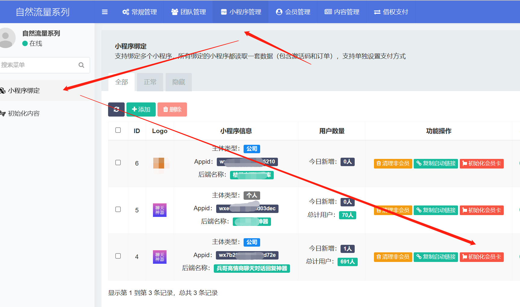 1. 进入【租户后台-小程序管理-小程序绑定-初始化会员卡】初始化小程序的会员卡