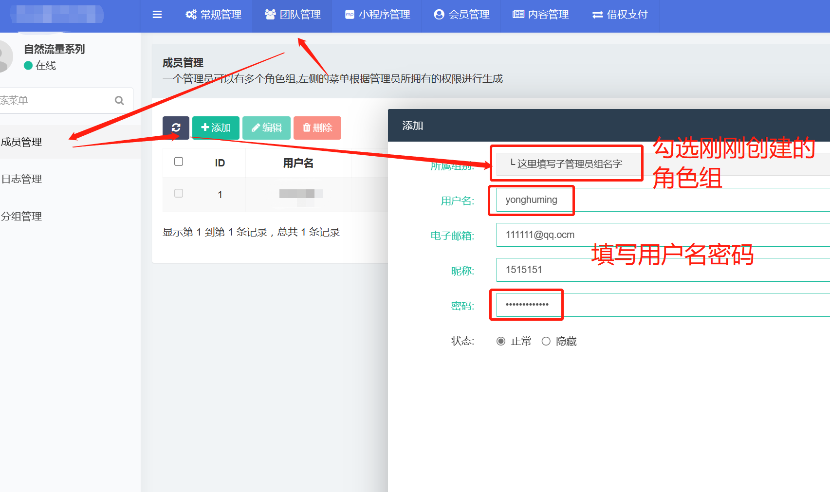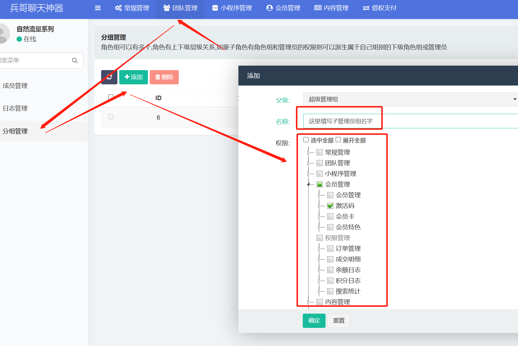 1. 添加管理员组,勾选要分配的权限。(如已创建,则可以忽略这一步)