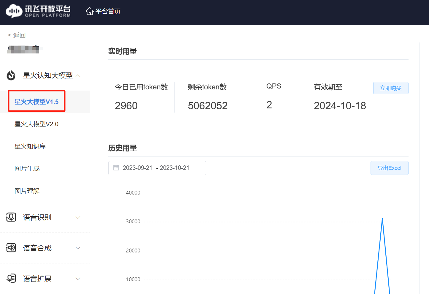 1. 打开[控制台-讯飞开放平台 (xfyun.cn)](https://console.xfyun.cn/services/cbm),申请【星火大模型,v1、v2、v3都支持】