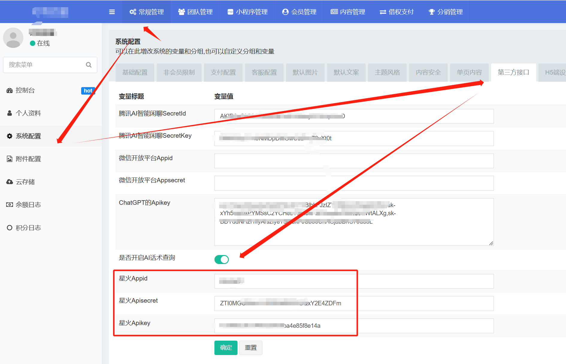 5. 将参数填写到后台,开启即可。