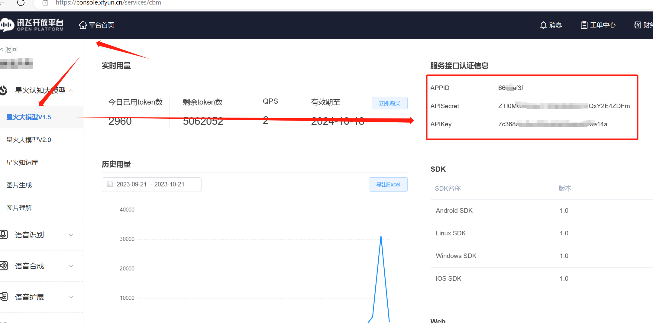 4. 获得APPID、APISecret、APIKey