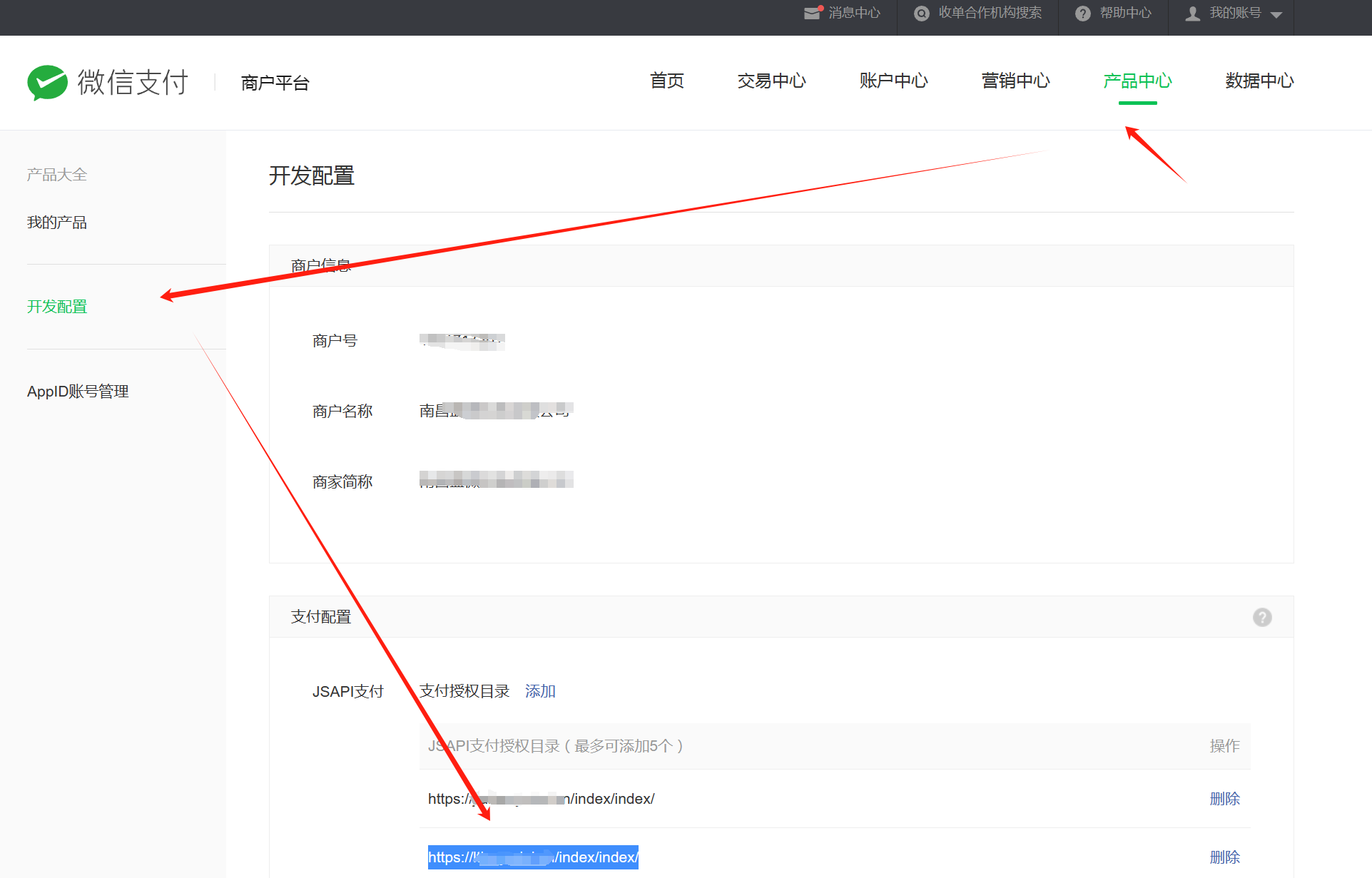 > 登录微信支付商户后台pay.weixin.qq.com的【产品中心-开发配置】配置支付授权目录