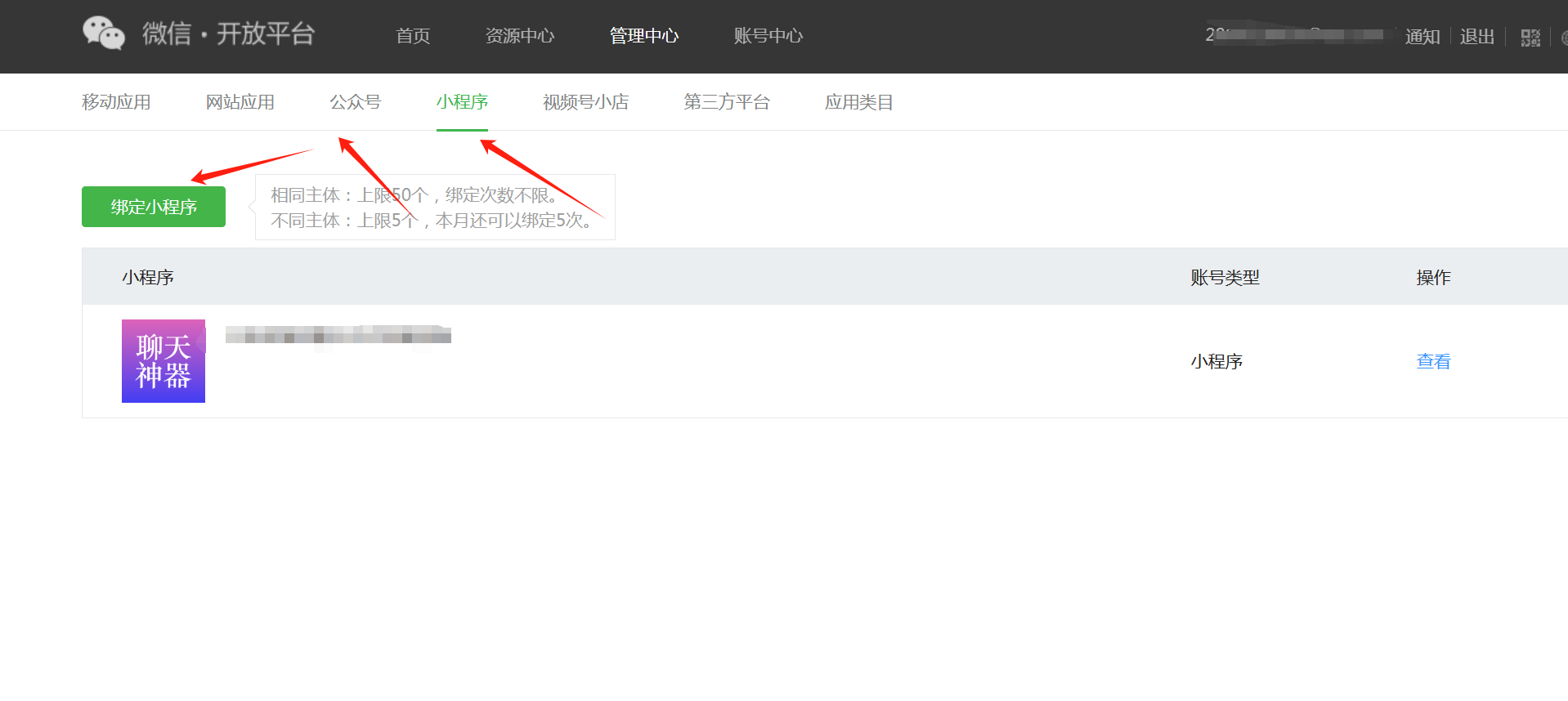 2. 绑定小程序和公众号平台