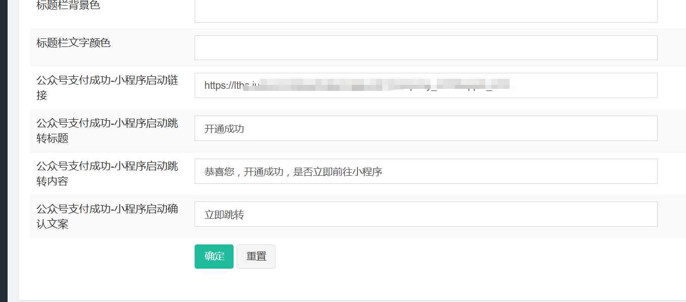 2. 前往【代理后台】-【常规管理】-【系统设置】-【H5端设置】填写公众号支付成功-小程序启动链接、小程序启动跳转标题、小程序启动跳转内容、小程序启动确认文案。