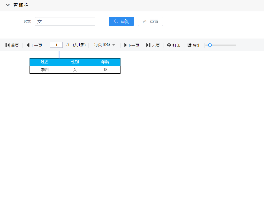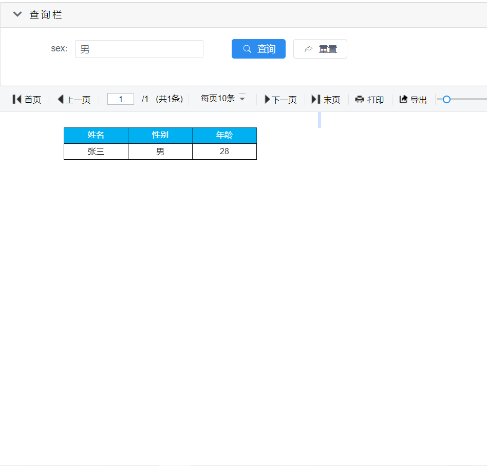 > 进入数据集配置页面,编码为`de`,并设置`sex`的查询默认值为`男`