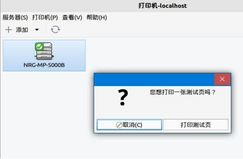 #### 4.点击“应用”后,弹出打印测试页面提示窗口,可以尝试打印测试页确认连接成功,如图2-4所示。