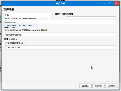 3、网络打印机有的可直接识到,有的需输入 IP 地址才能被识别到的,点击“网络打印机”按钮,根据后面括号内的 IP 地址选择打印机,如图2-3。