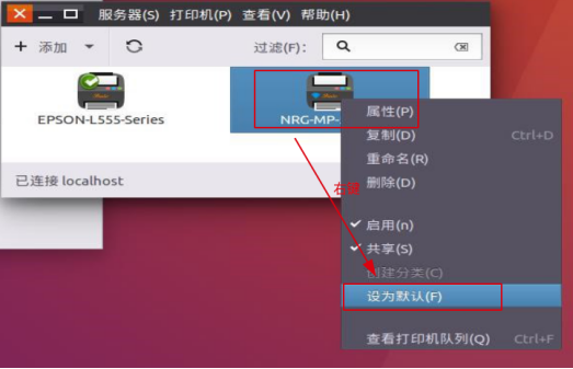 3、如果添加了多台网络打印机,可右键要共享的打印机进行默认打印机的设置,如图1-3。