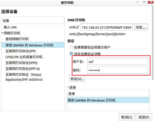 `注:如果原smb有设置samba用户和密码,则需要输入两次的用户名和密码,进行验证。`