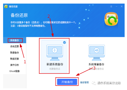 #### 2. 系统备份 - - 新建系统备份 - - 开始备份,如图1-2。