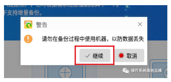 #### 5.点击“继续”。切记:备份过程中不可使用机器,以免造成数据丢失,如图1-5。