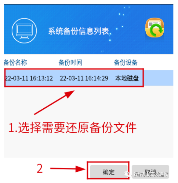 #### 3.选择需要还原的备份文件,点击“确定”,如图2-3。