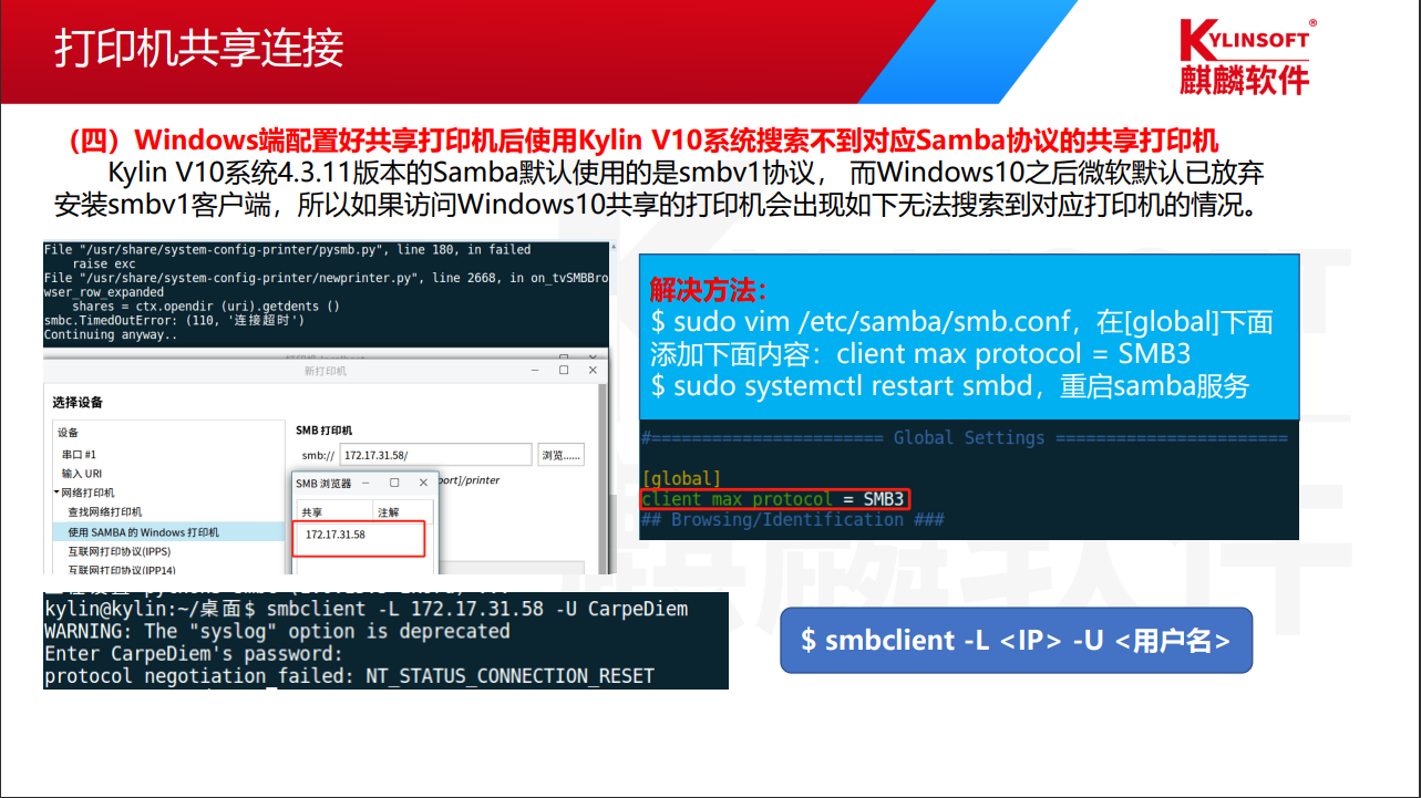 - win10在文件管理器无法访问kylin系统共享的目录时提示无法访问