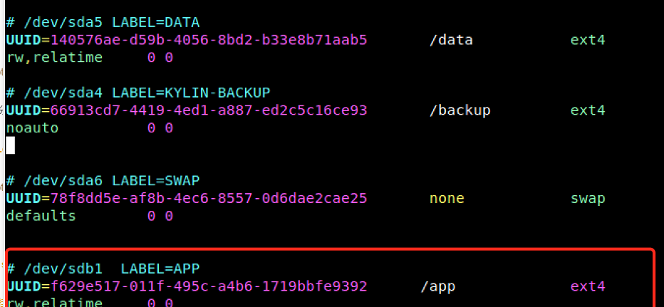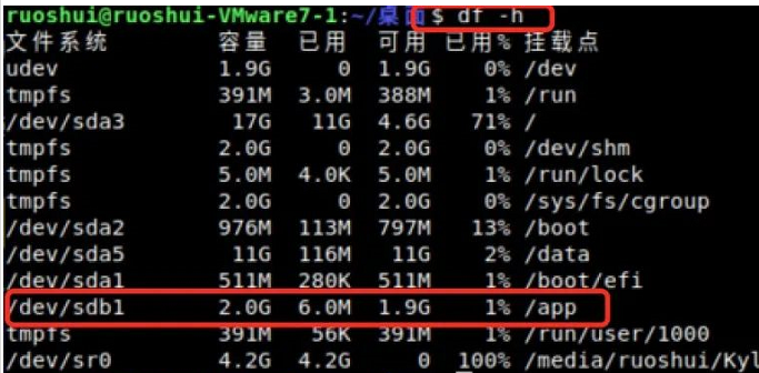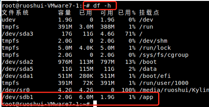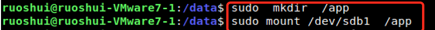 ### 2. 将/dev/sdb1挂载到/app:sudo mount /dev/sdb1 /app