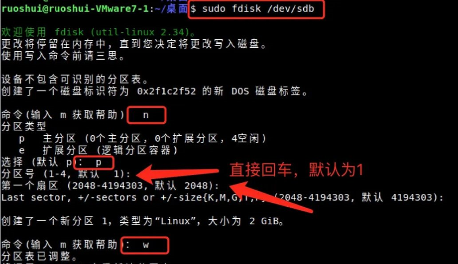 ruoshui@ruoshui-VMware7-1:~/桌面$ sudo fdisk /dev/sdb