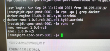 生产环境根据实际情况,将docker-runc-1.0.0.rc3-201.p01.ky10.aarch64.rpm上传至宿主机/tmp/下。