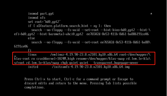 ### 1. Grub界面选择对应Kernel,按e进入编辑模式。