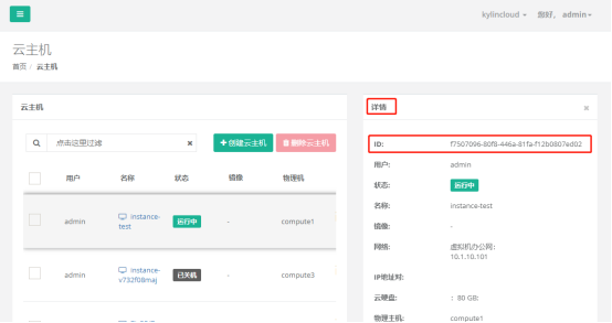 #### 2.1.5 在云平台上查看云主机的ID并复制