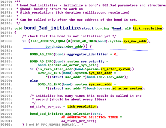 首次添加从接口若MAC类型是RANDOM时,会更新成从接口的MAC地址。也就是说,如果这里更新了MAC地址,之前那个初始化函数(bond_3ad_initialize)就可以正常执行了。