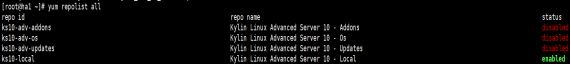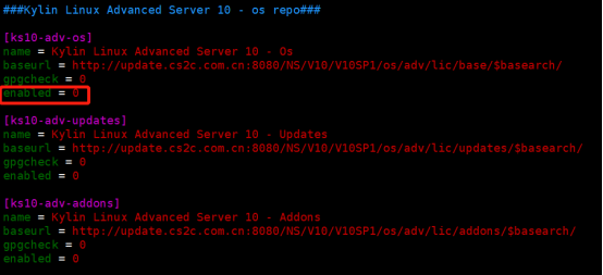 关闭外网yum源,修改/etc/yum.repo.d/ kylin_x86_64.repo,将其中的enabled项值都改为0