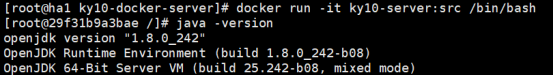 `docker run -it ky10-server:src /bin/bash`