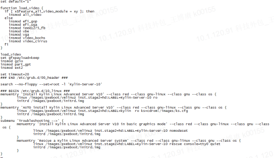 set default=”1”, 目的是默认停留引导菜单为第二行(从0开始)。