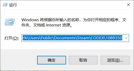 “%SystemDrive%\Users\Public\Documents\Steam\CODEX\1089350”后,回车